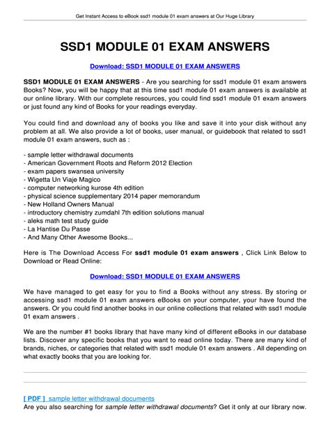 Read Online SSD LEVEL 3 MODULE 2 EXAM ANSWERS Doc